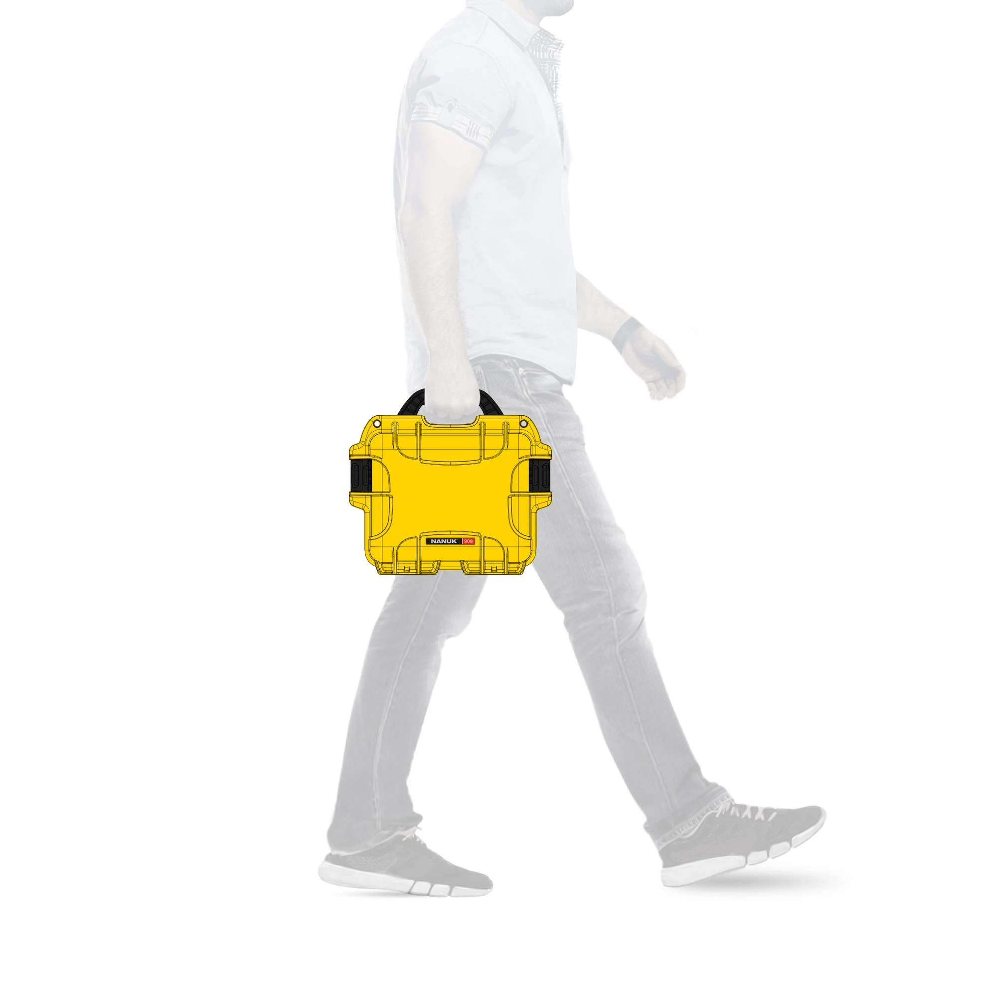 Das 908 Case wird mithilfe des seitlichen PowerClaw-Verschlusssystems geschlossen. Integrierte Schiebeverschlüsse verhindern, dass es sich während des Transports ungewollt öffnet. Der Schaumstoffeinsatz hat vorgeschnittene Würfelelemente, die sich herausnehmen lassen  – je nachdem, was du in der Box transportieren willst. Du kannst den Einsatz bei Bedarf auch komplett herausnehmen.