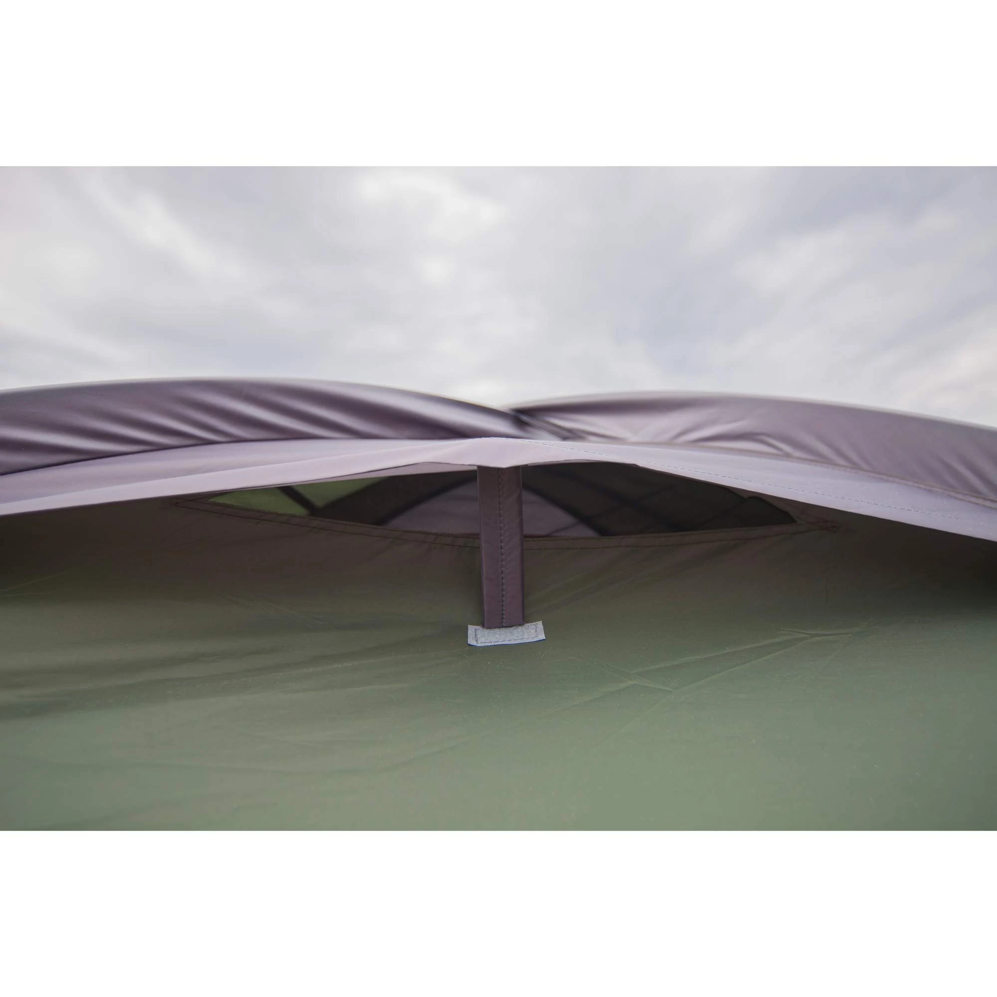 - Außenzelt und Innenzelt werden durch außenliegendes Gestänge gleichzeitig aufgebaut
