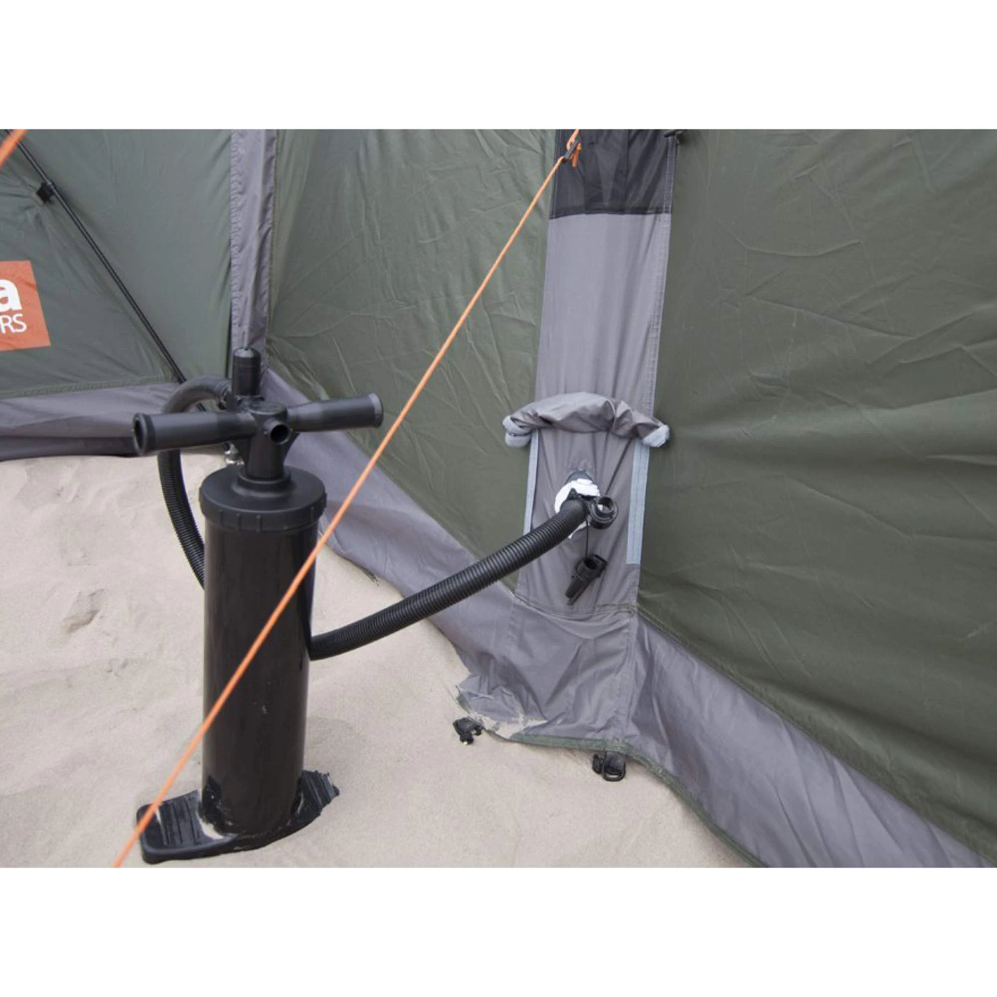 Das Zelt ist auf Bequemlichkeit ausgelegt. Neben dem aufblasbaren Gestänge gehören auch Leinenaufbewahrungstaschen zur Ausstattung. Der Haupteingang und die kleinen Nebeneingänge können zudem mit einem Moskitonetz verschlossen werden.