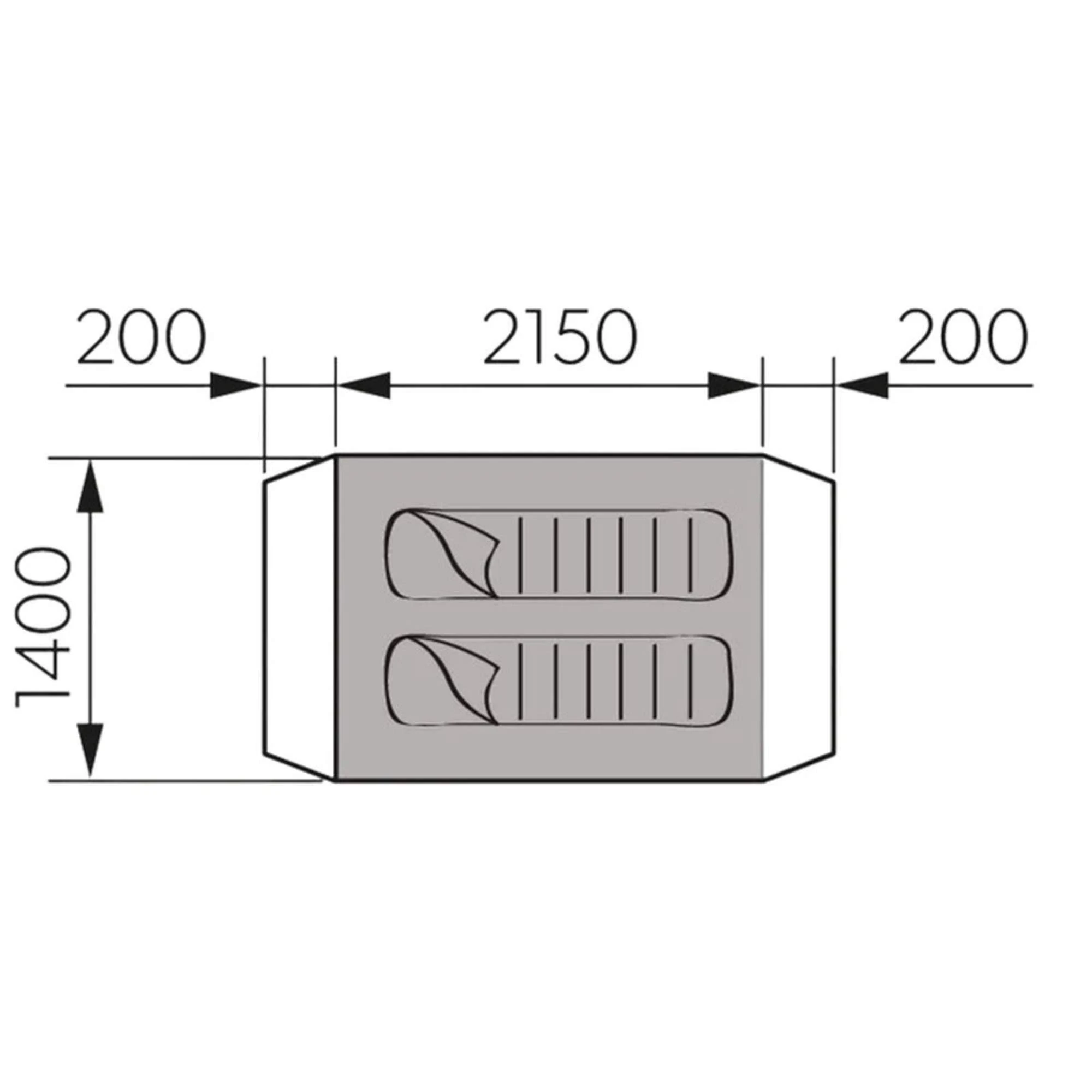 Im Kopf- und Fußbereich befinden sich große Lüftungsöffnungen mit Moskitonetz, die je nach Bedarf zum Teil oder vollständig geschlossen werden können. Im Inneren ist Platz genug für deinen Schlafsack und zum Verstauen deiner Kleidung. Zur weiteren Ausstattung gehört eine Netztasche für Kleinteile und eine Kabeldurchführung ins Innenzelt, die mit einem Reißverschluss verschlossen werden kann. Ein Karabiner erlaubt dir das Aufhängen einer Zeltlaterne unter der Decke.