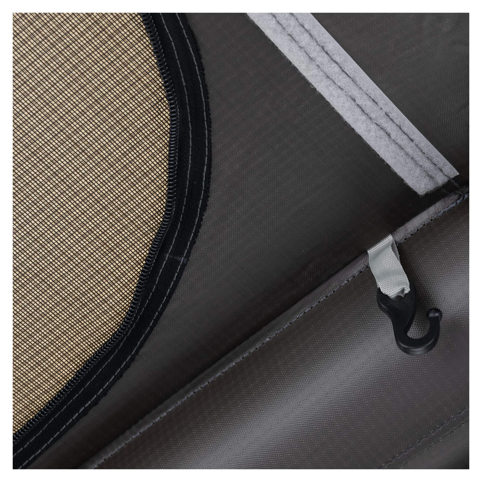 Das praktische und klein verpackbare Dachzelt hat aber noch einen weiteren Vorteil, der es vor allem für Nachteulen und Langschläfer:innen zum idealen Zelt macht. Es lässt sich von innen hervorragend abdunkeln! Und wenn wir dunkel sagen, dann meinen wir auch dunkel! Selbst die Messehalle in Düsseldorf samt greller Deckenbeleuchtung konnte “ausgeblendet” werden! Das kräftige Material schluckt darüber hinaus einiges an Geräuschen, auch wenn du hier nicht zu viel erwarten solltest, denn es ist logischerweise noch immer ein Zelt!