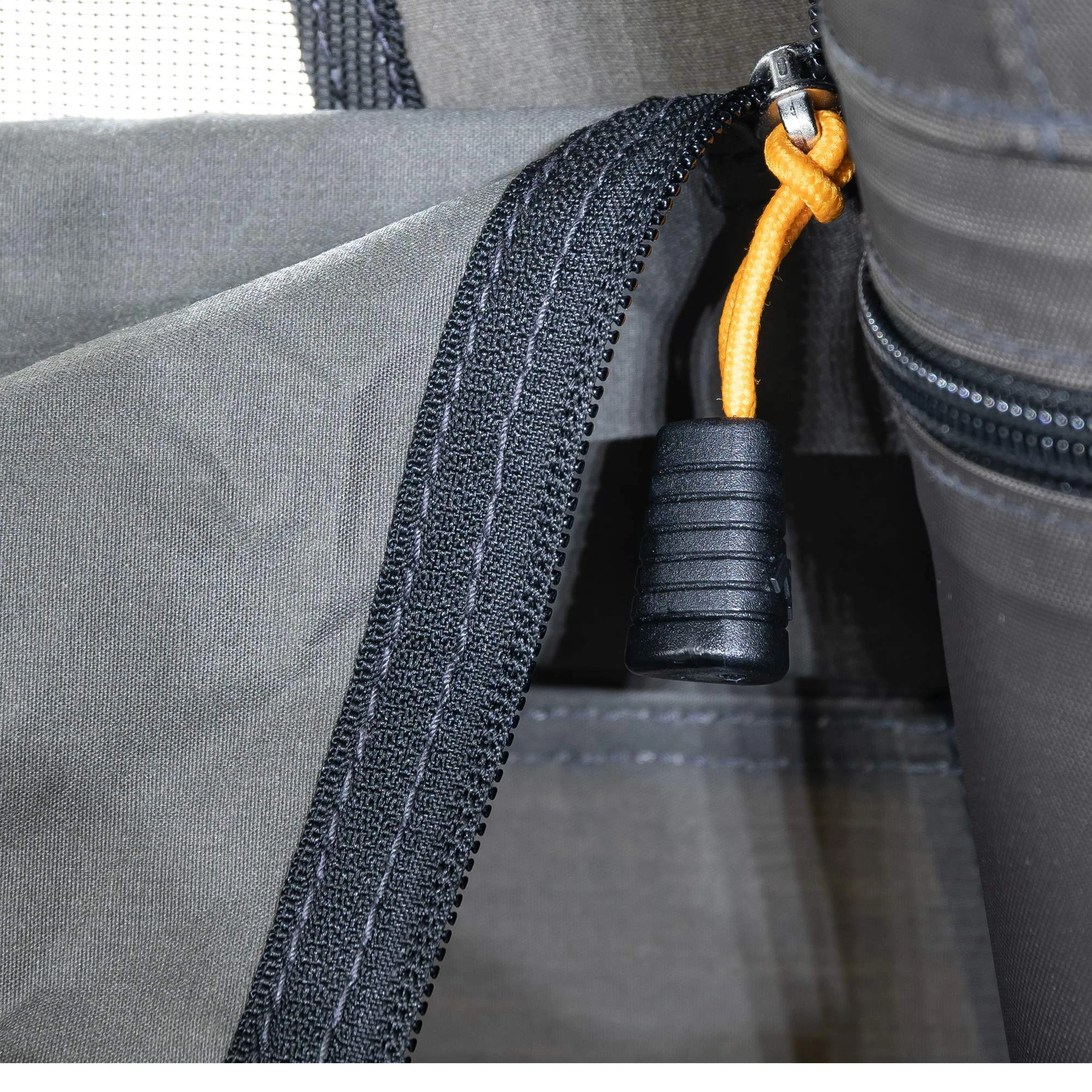 - Innenliegende Meshtaschen für Taschenlampe und co