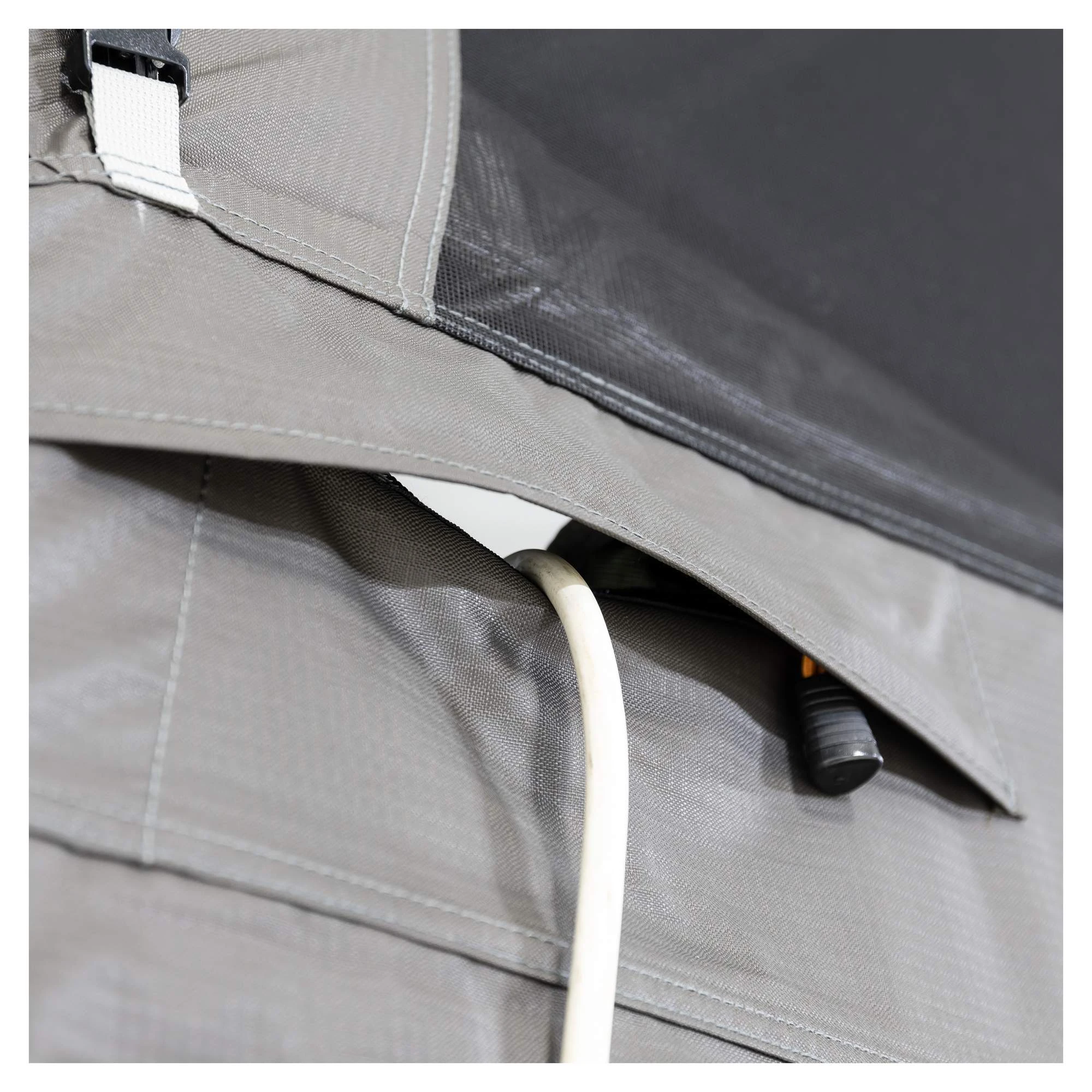 Das Dachzelt besticht aber nicht nur durch seinen ausgesprochen praktischen und einfachen Aufbau. Auch das Klima im Inneren ist ein echter Genuss. Dank des Polycotton-Materials, also einem funktionalen Mix aus Baumwolle und synthetischen Fasern, ist es im Zelt selbst bei höheren Temperaturen noch angenehm kühl. Umgekehrt hält es bei kühleren Außentemperaturen aber auch die Wärme besser im Inneren als ein Zelt aus rein synthetischen Materialien.