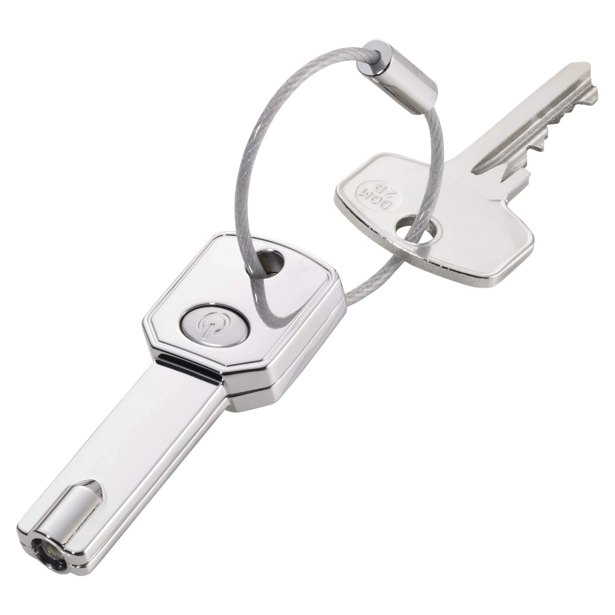 Dieser kleine Schlüsselanhänger mit LED hilft dir an dunklen Türen das Schlüsselloch leichter zu finden. Er fügt sich durch die Schlüsselform gut in den Schlüsselbund ein.