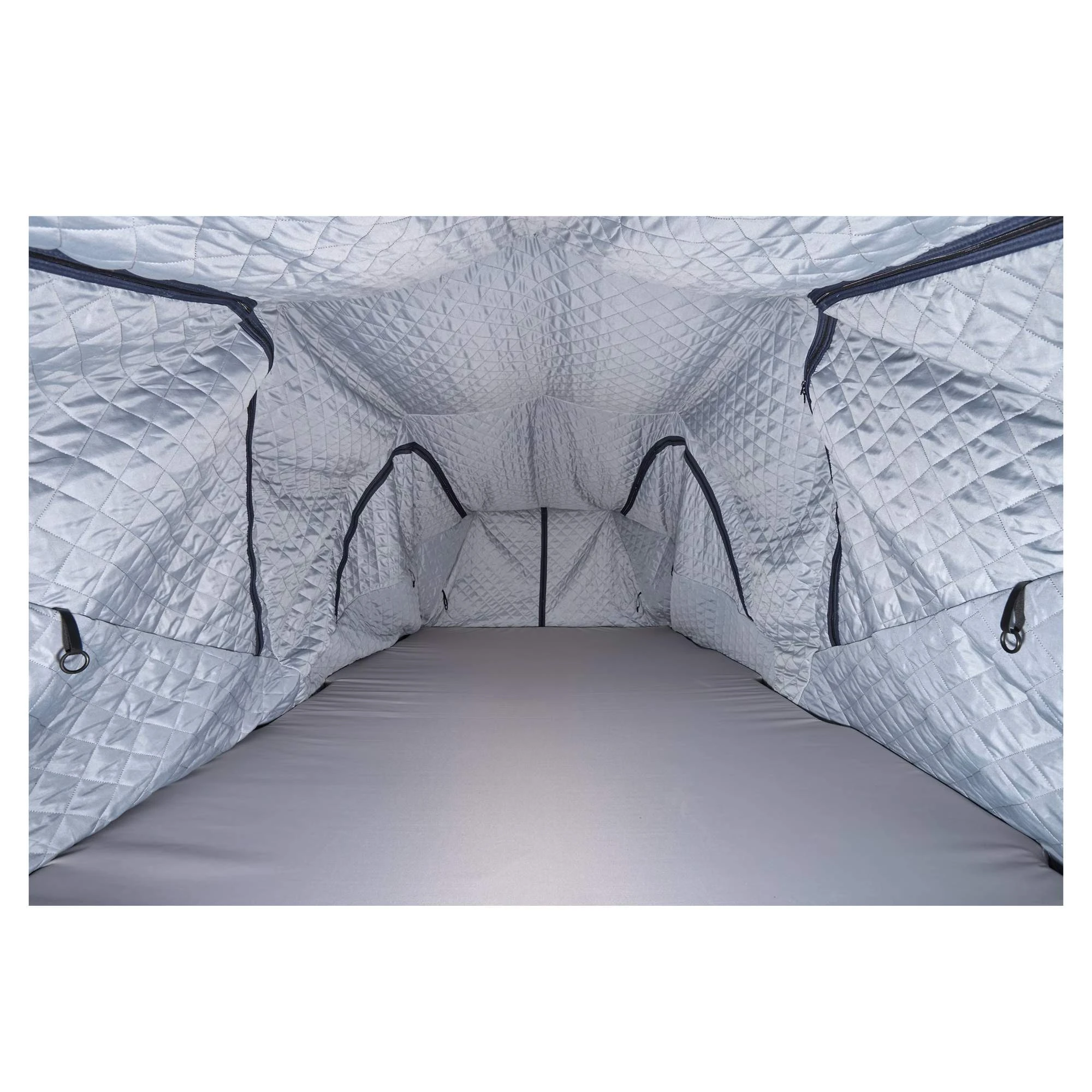 Zumindest sofern du auch das Approach-Dachzelt besitzt. Hier kann das gesteppte “Thermo-Innenzelt” passgenau angebracht werden. So sind auch frostige Temperaturen kein Problem. Über im Innenraum liegende Reißverschlüsse können bequem die Fenster und Belüftungsöffnungen des eigentlichen Zelts bedient werden.