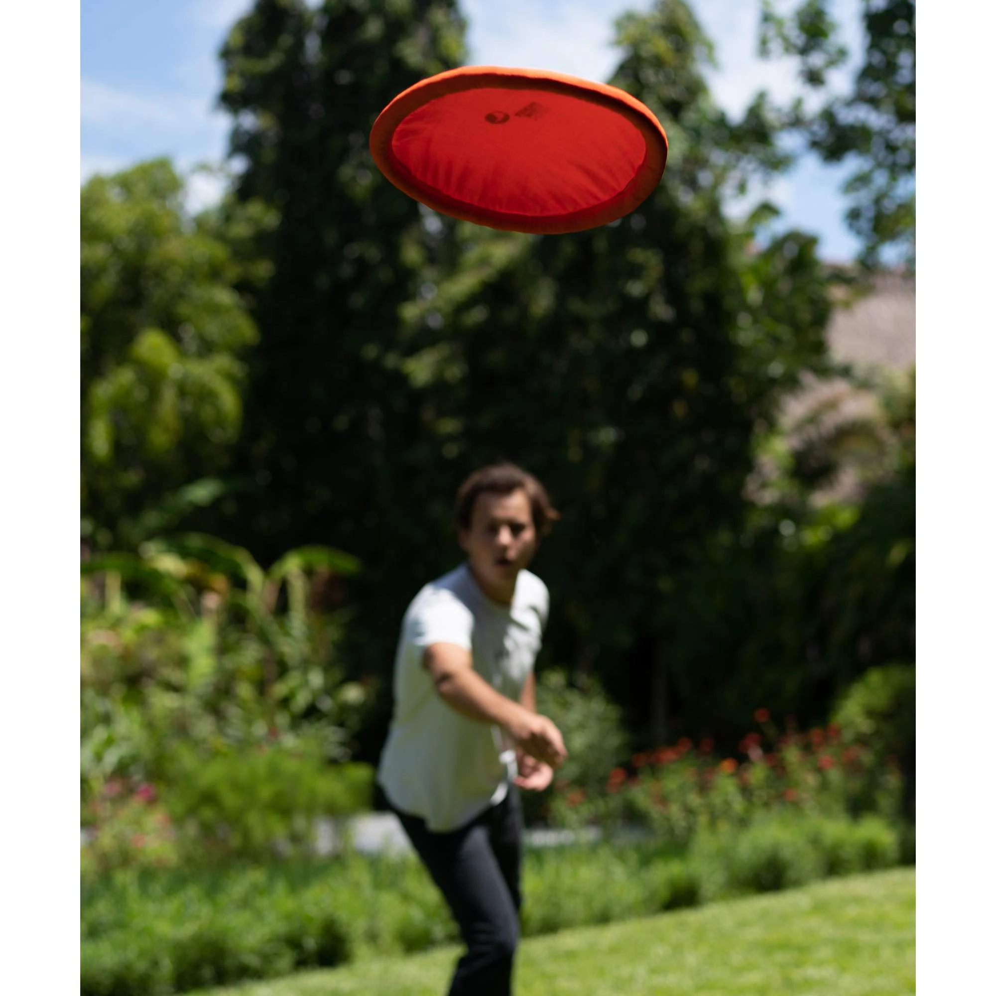 Die Füllung des Rands besteht aus Restmaterial – praktisches Upcycling. Dadurch fliegt die Frisbee nicht nur gut, sondern garantiert auch schmerzfreies Fangen. Durch die Konstruktion ist die Frisbee leicht und auch praktisch verstaubar. Ein Packbeutel wird mitgeliefert. Die faltbare Frisbee ist genial für Kinder, und auch erprobte Spieler kommen definitiv auf ihre Kosten.
